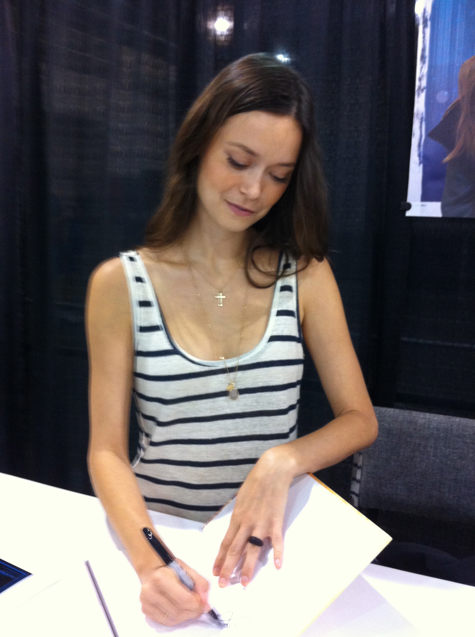 It was early, and Summer had not yet arrived at the booth. When I flashed my newly acquired VIP badge and took my place in the short line of the lucky ones, I found myself standing next to Jenny, the Jersey Browncoat I’d met the previous day at the Firefly panel! That was a pleasant surprise, and being able to talk to her and her friend made the time spent waiting in line pass more quickly.