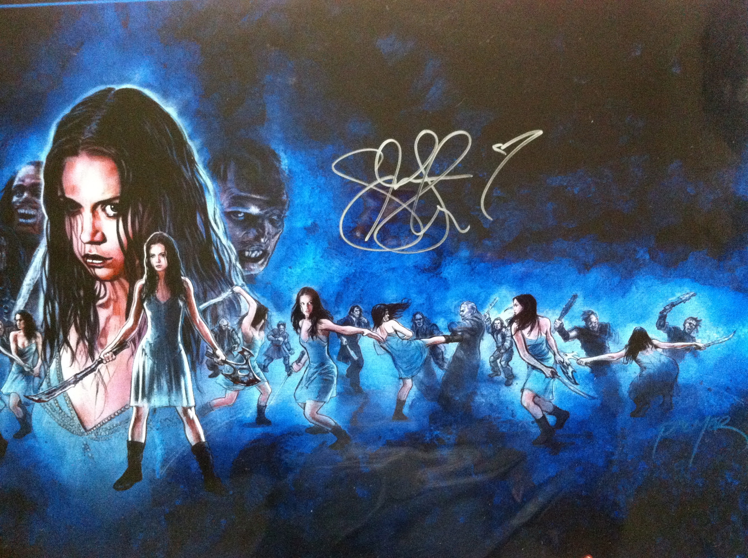 My Jason Palmer painting of River Tam’s battle with the Reavers, signed by both the artist (in blue, bottom right) and Summer Glau.
