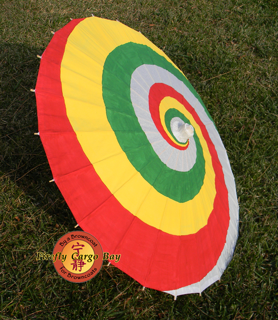 KP: Parasols have usually been the best sellers online– especially in October! I date every parasol I paint. I wish I would have thought to number each one when I started offering them, but who knew, right? I’ve been painting Kaylee-esque parasols by hand since 2008, I believe. I’ve got to be well over 500 by now. At conventions the buttons go very well, which is why I’ve branched out into other fandoms with them. I usually have about 150 different ones at any given show. There are some designs of which I know no matter how many I make, I will run out!